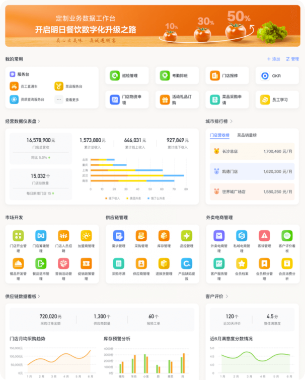 西貝自 2022 年選擇全員使用飛書(shū),實(shí)現(xiàn)總部和門(mén)店的高效協(xié)同,并通過(guò)飛書(shū) OKR 強(qiáng)化組織戰(zhàn)略落地,打造餐飲行業(yè)數(shù)字化最佳實(shí)踐。公司介紹西貝是中國(guó)餐飲百?gòu)?qiáng)企業(yè),旗下西貝莜面村是國(guó)內(nèi)中式正餐經(jīng)營(yíng)規(guī)模最大的品牌。西貝 1988 年創(chuàng)立于內(nèi)蒙古臨河,擁有西貝莜面村、賈國(guó)龍功夫菜、西貝海鮮、九十九頂氈房四大品牌。 2020 年 6 月,入選“ 2019 年中國(guó)餐飲企業(yè)百?gòu)?qiáng)”,2021 年 12 月,入選 2021 內(nèi)蒙古民營(yíng)企業(yè) 100 強(qiáng)名單。用飛書(shū)構(gòu)建一站式協(xié)作平臺(tái), 1 秒將重要信息傳達(dá)全國(guó) 370 家門(mén)店作為全國(guó)最大的中式正餐連鎖企業(yè),創(chuàng)立 34 年來(lái),西貝在全國(guó) 58 個(gè)城市開(kāi)設(shè)了 370 家直營(yíng)門(mén)店,員工 26000 人,每年服務(wù) 7000 萬(wàn)消費(fèi)者。業(yè)務(wù)的快速成長(zhǎng),讓組織也面臨更大的挑戰(zhàn)。如何做強(qiáng)總部的專業(yè)化分工、實(shí)現(xiàn)各專業(yè)職能部門(mén)的橫向打通,增進(jìn)部門(mén)之間的協(xié)同關(guān)系,加強(qiáng)總部到全國(guó)門(mén)店的順暢溝通,成為西貝在數(shù)字化經(jīng)營(yíng)過(guò)程中面臨的重要挑戰(zhàn)。完成向飛書(shū)的遷移后,西貝用飛書(shū)打通全員通訊錄,總部可即時(shí)聯(lián)系到任意門(mén)店的任意一個(gè)員工,員工間可設(shè)置精細(xì)的溝通權(quán)限管控,找人、溝通都更便捷。使用飛書(shū)會(huì)議異地溝通,支持千方同時(shí)參會(huì),一鍵發(fā)起企業(yè)內(nèi)直播,讓會(huì)議更高效。會(huì)后飛書(shū)妙記自動(dòng)生成錄像及逐字稿,1.8 萬(wàn)字會(huì)議紀(jì)要只需 5 分鐘,準(zhǔn)確率高達(dá) 98% 以上,讓會(huì)議結(jié)論有據(jù)可循。西貝還將公司內(nèi)的各類文檔遷移到飛書(shū)文檔中,并使用知識(shí)庫(kù)實(shí)現(xiàn)重要信息的整合、沉淀。使用飛書(shū)前,資料沉淀在本地文件中,文件傳達(dá)到全國(guó)員工,需員工層層復(fù)制轉(zhuǎn)發(fā)、效率低。使用飛書(shū)后,可以用一個(gè)在線鏈接,和所有員工分享最新版本內(nèi)容,并支持隨時(shí)更新。文檔權(quán)限可嚴(yán)格管控,限制復(fù)制和下載權(quán)限,僅限內(nèi)部查閱,重要信息可 1 秒加急上萬(wàn)人,使命必達(dá)。用飛書(shū),僅需 1 小時(shí)搭建業(yè)務(wù)表格管理供應(yīng)商抽檢、開(kāi)票工單餐飲上下游環(huán)節(jié)眾多,有大量非標(biāo)準(zhǔn)化的業(yè)務(wù)場(chǎng)景。這些業(yè)務(wù)場(chǎng)景無(wú)法通過(guò)成熟第三方系統(tǒng)實(shí)現(xiàn)業(yè)務(wù)數(shù)字化,而團(tuán)隊(duì)靠填表、傳文件、人工匯總的方式運(yùn)轉(zhuǎn),又低效繁瑣。飛書(shū)多維表格可靈活搭建輕便的業(yè)務(wù)數(shù)字化工具,系統(tǒng)“想要就能有”,最快 1 小時(shí)即可上線。比如,西貝食品安全巡視組會(huì)定期進(jìn)行供應(yīng)商、門(mén)店的抽檢。使用飛書(shū)前,所有小組成員需在 Excel 上填寫(xiě)相關(guān)信息,信息層層上交、匯總,部門(mén)逐級(jí)催辦,數(shù)據(jù)統(tǒng)計(jì)報(bào)告制作繁瑣,每次抽查,往往需要 1 整個(gè)工作日專人進(jìn)行資料整理。使用飛書(shū)后,團(tuán)隊(duì)將抽檢工作通過(guò)飛書(shū)多維表格協(xié)作,使用表格分配任務(wù)、系統(tǒng)自動(dòng)提醒還未提交的成員,數(shù)據(jù)分頭錄入、自動(dòng)匯總,并能通過(guò)儀表盤(pán)實(shí)時(shí)展現(xiàn)數(shù)據(jù)洞察。類似的,通過(guò)多維表格搭建開(kāi)票流程的協(xié)作工具,也讓西貝團(tuán)隊(duì)每年省下 65 人·天。西貝門(mén)店與客服中心的同事,經(jīng)常遇到客戶補(bǔ)開(kāi)發(fā)票的需求。客戶離店后需補(bǔ)開(kāi)發(fā)票,無(wú)法按常規(guī)開(kāi)票流程自助實(shí)現(xiàn),往往需要客服、財(cái)務(wù)、門(mén)店多方協(xié)協(xié)助完成。使用飛書(shū)前,客服或門(mén)店接到客戶特殊開(kāi)票需求后,需與客戶人工收集相關(guān)信息;部分開(kāi)票信息不規(guī)范、不全面,可能需要和顧客二次溝通,效率低下、影響顧客體驗(yàn);相關(guān)信息通過(guò)即時(shí)消息與財(cái)務(wù)溝通,無(wú)法清晰掌握開(kāi)票進(jìn)度,協(xié)作成本高;每次開(kāi)票信息都需要財(cái)務(wù)系統(tǒng)中人工確認(rèn)匹配,操作易出錯(cuò);使用飛書(shū)后,客戶點(diǎn)擊客服提供的鏈接、或在門(mén)店掃碼,填寫(xiě)飛書(shū)表單,可準(zhǔn)確提交開(kāi)票信息;系統(tǒng)自動(dòng)通知財(cái)務(wù)同事處理開(kāi)票;多維表格內(nèi)自動(dòng)根據(jù)客戶所在門(mén)店匹配對(duì)應(yīng)開(kāi)票信息,省去人工確認(rèn);客服完成開(kāi)票后,系統(tǒng)自動(dòng)提醒客服或門(mén)店辦結(jié)情況。從消費(fèi)者到門(mén)店員工,再到總部客服、財(cái)務(wù)團(tuán)隊(duì),使用多維表格無(wú)縫連通,信息效率大大提高。用飛書(shū)搭建學(xué)習(xí)群,自動(dòng)化沉淀組織洞察與思考西貝倡導(dǎo)建設(shè)學(xué)習(xí)型組織,在高管團(tuán)隊(duì)中建立“日清日高”學(xué)習(xí)群(今天完成的事情必須比昨天有提高,明天的目標(biāo)必